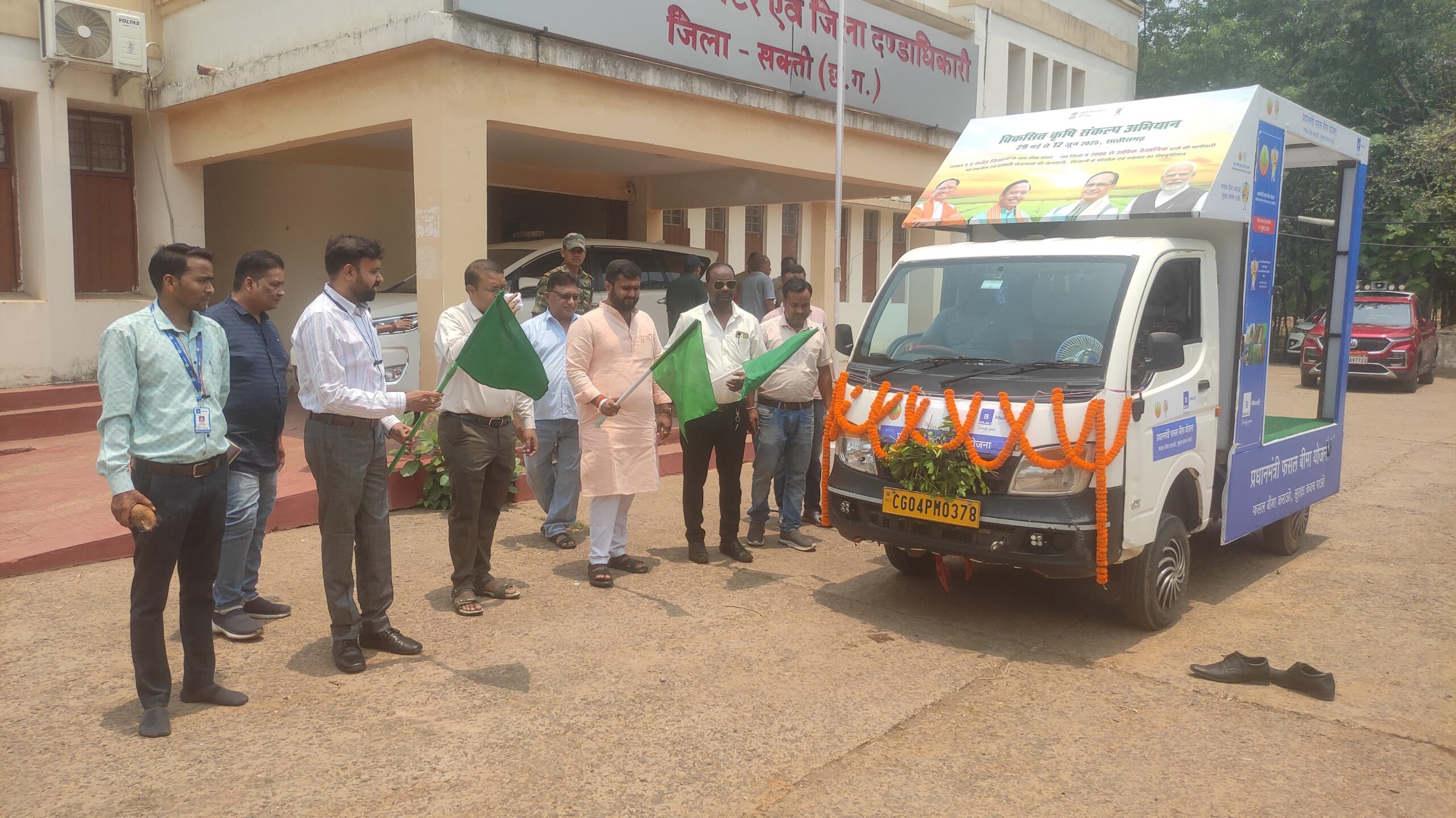 सक्ती, 30 मई 2025// जिले के किसानों को आत्मनिर्भर और तकनीकी रूप से सशक्त बनाने हेतु विकसित कृषि संकल्प अभियान् चलाया जा रहा है। इसी क्रम मे आज जिला पंचायत सदस्य श्री आयुष शर्मा और कलेक्टर श्री अमृत विकास तोपनों ने कलेक्ट्रेट परिसर जेठा से प्रधानमंत्री फसल बीमा रथ को हरी झण्डी दिखाकर रवाना किया गया। इस अवसर पर श्री गेंदराम मनहर, उप संचालक पशुधन विकास विभाग डॉ नदीम शमस, नोडल अधिकारी जिला सहकारी केन्द्रीय बैंक मर्या. श्री अश्वनी पाण्डेय और जिला प्रतिनिधि बजाज एलाइंस जनरल इंस्योरेंस कंपनी सक्ती भी उपस्थित थे। उप संचालक कृषि श्री शशांक शिंदे से प्राप्त जानकारी अनुसार विकसित कृषि संकल्प अभियान के तहत फसल बीमा रथ 12 जून तक जिले के प्रत्येक ग्राम पंचायतों में जाकर योजना का प्रचार-प्रसार कर किसानों को जागरूक किया जाएगा। उप संचालक कृषि श्री शशांक शिंदे ने बताया कि जिले में धान सिचिंत और धान असिंचित फसल अधिसूचित है। जिले के समस्त ऋणी एवं अऋणी किसान 31 जुलाई तक फसल बीमा करा सकते है तथा योजना का लाभ ले सकते है। विगत वर्ष जो किसान फसल बीमा आवरण से बाहर हो गये है वे संबंधित सेवा सहकारी समितियों मे जाकर पुनः फसल बीमा आवरण में शामिल होने हेतु आवेदन कर सकते है। कृषि विभाग के मैदानी अमलों को भी क्रियान्वयक बीमा कंपनी के साथ समन्वय कर प्रधानमंत्री फसल बीमा योजना की जानकारी देकर प्रचार-प्रसार करने हेतु निर्देशित किया गया है।