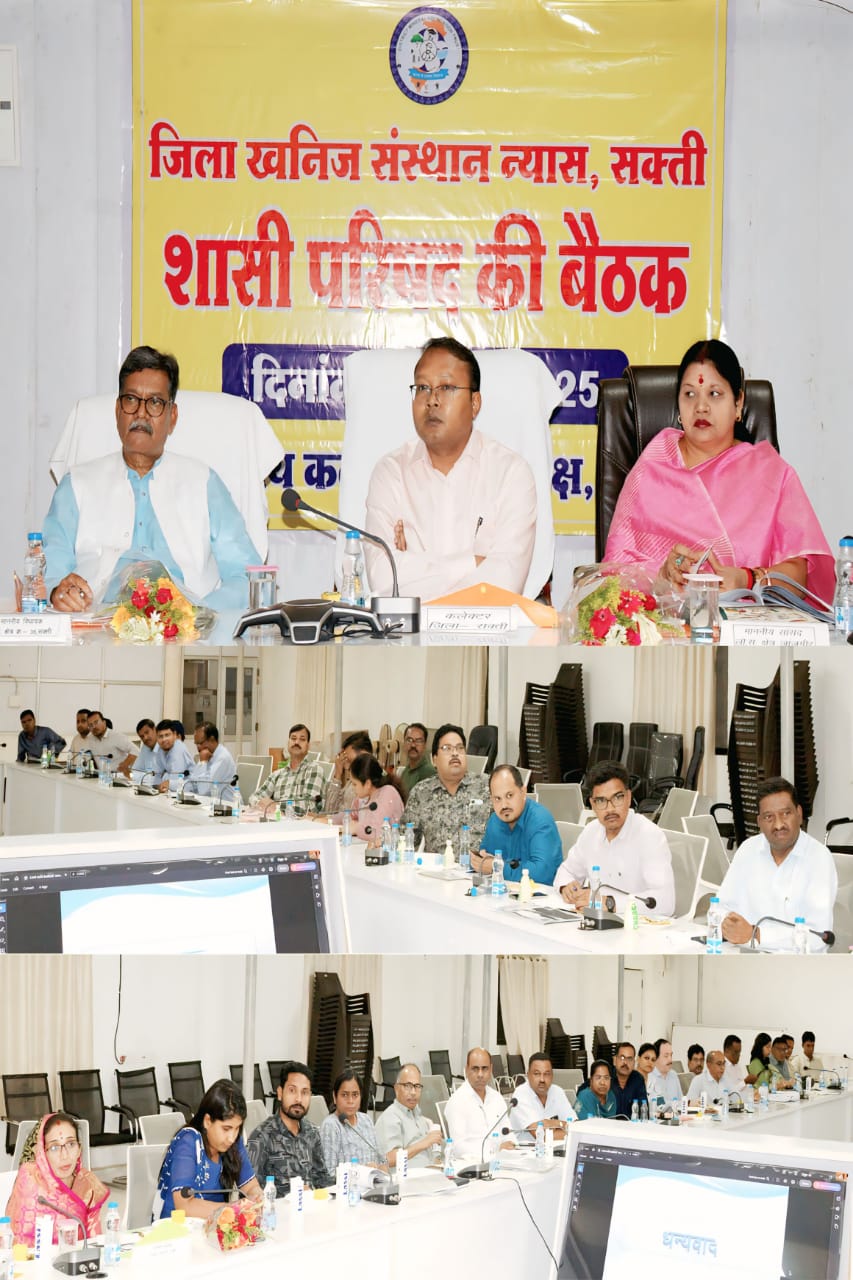 सक्ती, 31 मई 2025/ सांसद लोकसभा क्षेत्र जांजगीर चाम्पा श्रीमती कमलेश जांगडे, विधायक सक्ती डॉक्टर चरण दास महंत, विधायक चंद्रपुर श्री रामकुमार यादव, विधायक जैजैपुर श्री बालेश्वर साहू, जिला पंचायत अध्यक्ष श्रीमती द्रौपती कीर्तन चंद्रा, कलेक्टर एवं जिला दंडाधिकारी श्री अमृत विकास तोपनो, पुलिस अधीक्षक सुश्री अंकिता शर्मा, जिला पंचायत मुख्य कार्यपालन अधिकारी श्री वासु जैन सहित विभिन्न विभागों के जिला अधिकारियो की उपस्थिति में आज सक्ती जिले के कलेक्ट्रेट परिसर सभाकक्ष में जिला खनिज संस्थान न्यास शासी परिषद की बैठक आयोजित हुई। बैठक में जिला खनिज सस्थान न्यास अंतर्गत प्रस्तावित कार्य योजना में शामिल कार्यों के संबंध में बारी – बारी से विस्तारपूर्वक जानकारी दी गई। जिस पर जनप्रतिनिधियों और संबंधित अधिकारीयों की उपस्थिति में चर्चा और विचार विमर्श किया गया तथा आवश्यक निर्देश दिए गए। बैठक में उपस्थित जनप्रतिनिधियो द्वारा सक्ती जिला और आमजन के विकास कार्यों में डीएमएफ की राशि का सदुपयोग करने कहा गया।