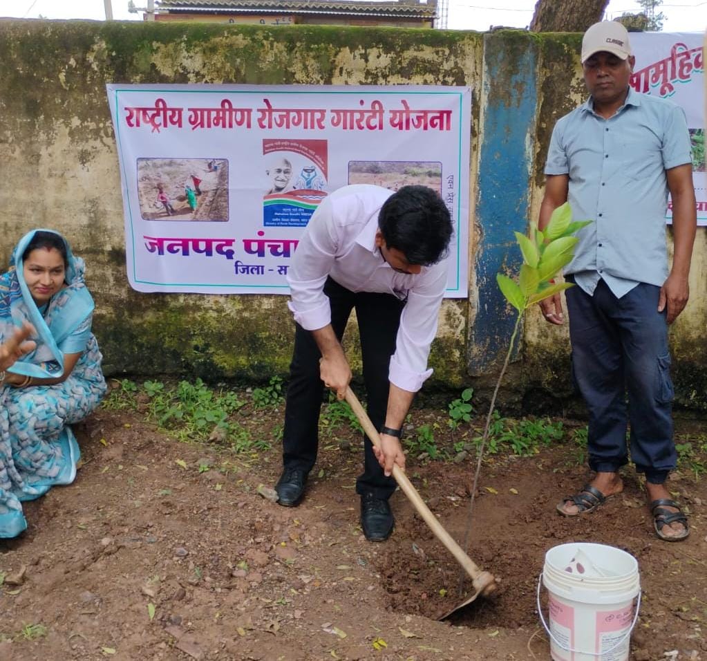 सक्ती, 16 जुलाई 2025// कलेक्टर एवं जिला दंडाधिकारी श्री अमृत विकास तोपनो के निर्देशानुसार जनपद पंचायत जैजैपुर अंतर्गत ग्राम नंदेली में पौधरोपण महाअभियान का आयोजन किया गया। जिसमें “एक पेड़ मां के नाम 2.0” के तहत् पौधरोपण किया गया जिसमें मुख्य कार्यपालन अधिकारी जिला पंचायत सक्ती श्री वासु जैन के द्वारा सामूहिक पौधरोपण महाअभियान का शुभारंभ किया गया है। जिसमें मुख्य कार्यपालन अधिकारी जनपद पंचायत सक्ती श्रीमती प्रीति पवार, कार्यक्रम अधिकारी श्रीमती आकांक्षा सिन्हा, तकनीकी सहायक वंदना देवांगन व सरपंच,सचिव,रोजगार सहायक की उपस्थिति में सम्पन्न हुआ। कार्यक्रम में महिला स्व-सहायता समूह के सदस्य भी शामिल हुए। आगामी दिनों में विभिन्न ग्राम पंचायतों में भी वृहद रूप से पौधरोपण का आयोजन किया जाना है। उक्त कार्यक्रम में जनप्रतिनिधि एवं ग्रामीणजनों की भागीदारी भी सुनिश्चित करने हेतु निर्देशित किया गया है।