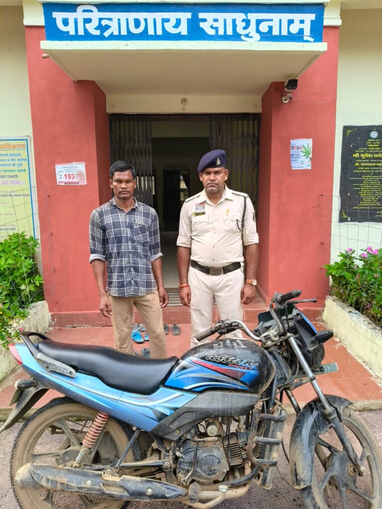 बरामद:- एक नीला रंग के हीरो होंडा पैशन प्रो मोटर साइकिल क्रमांक सीजी 11 एवाई 9802