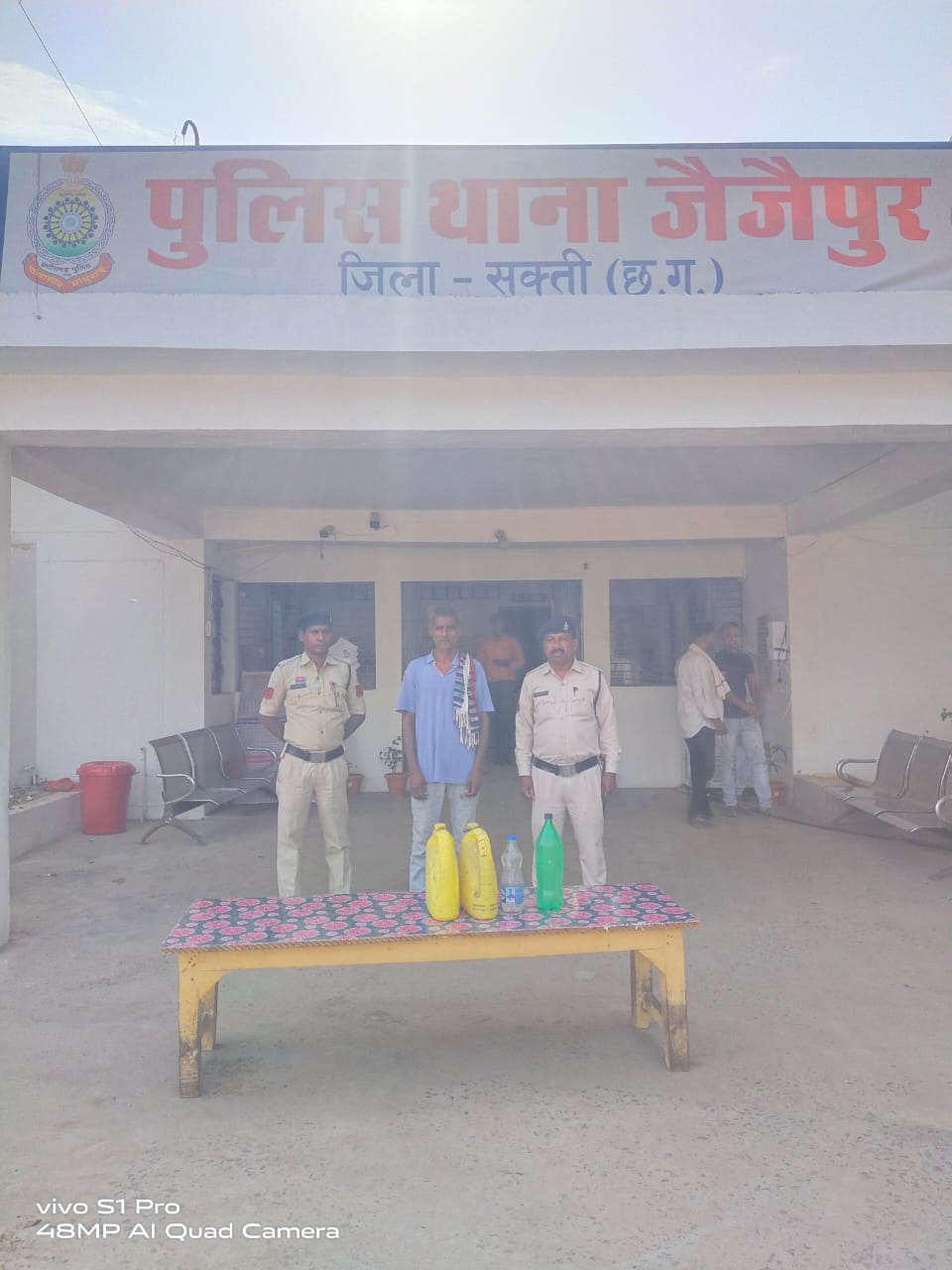 जैजैपुर पुलिस की कार्यवाही श्रीमान पुलिस अधीक्षक महोदया सक्ती सुश्री अंकिता शर्मा (भापुसे) अतिरिक्त पुलिस अधीक्षक श्री हरीश यादव (रापुसे) , अणुविभागीय अधिकारी मनीष कुंवर (रापुसे) द्वारा अवैध शराब परिवहन, संग्रहण एवं बिक्री करने वालो के खिलाफ सख्त कार्यवाही किये जाने के निर्देश के परिपालन में दो अलग अलग जगहो पर थाना जैजैपुर पुलिस द्वारा दिनांक 05/05/2025 को मुखबीर सूचना पर (1) जिंदर लहरे पिता छोटकू लहरे महेश उम्र 32 साल ग्राम ओढ़ेकेरा थाना जैजैपुर जिला सक्ती छ.ग. द्वारा अपने घर के सामने गली मेंअवैध रूप से शराब बिक्री करते आरोपी के कब्जे से 3 पीले रंग की पांच पांच लीटर क्षमता वाली प्लास्टिक जरिकेन के अंदर भरी हुई 15 लीटर कच्ची महुआ शराब व (2) आरोपी मंसाराम सतनामी पिता रंगी लाल सतनामी उम्र 57 साल साकिन ओढेकेरा के कब्जे से 2 पीले रंग के 5 लीटर क्षमता वाली प्लास्टिक जरिकेन के अंदर भरी हुई करीबन 10 लीटर कच्ची महुआ शराब एवं एक हरे रंग के 2 लीटर क्षमता वाली बोतल अंदर भरी हुई 2 लीटर कच्ची महुआ शराब व एक सफेद रंग के 1 लीटर क्षमता वाली प्लास्टिक बोतल के अंदर भरी हुई 1 लीटर कच्ची महुआ शराब कुल 13 लीटर कच्ची महुआ शराब को जप्त कर कब्जा पुलिस लिया गया है। उक्त आरोपीयों का कृत्य अपराध धारा 34(2)आबकारी एक्ट का पाये जाने से थाना जैजैपुर में अपराध क्रमांक 92/2025, 93/2025 धारा 34 (2) आब. एक्ट के तहत अपराध पंजीबद्ध कर विवेचना कार्यवाही में लिया गया। एवं आरोपीयों को न्यायिक रिमांड पर भेजा गया है। सौजन्य