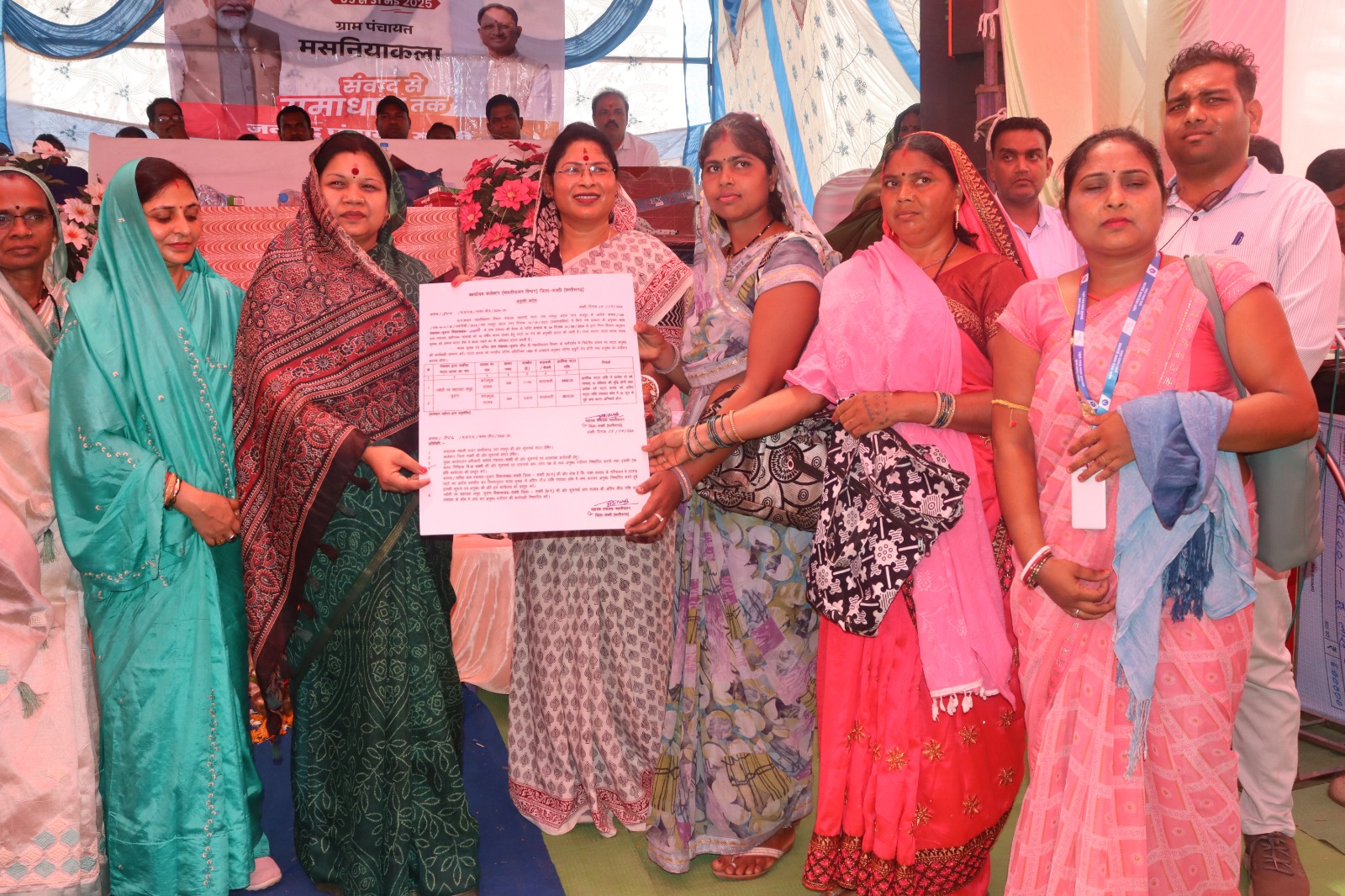 मसनियाकला में आयोजित शिविर में जिला पंचायत सदस्य श्रीमती विद्या सिदार, मुख्य कार्यपालन अधिकारी जिला पंचायत श्री वासु जैन, सक्ती एसडीएम श्री अरुण कुमार सोम, तहसीलदार बाराद्वार श्रीमती गरिमा मनहर,जनपद अध्यक्ष श्रीमती नीतू रॉय, सत्य प्रकाश महंत, राजू राठौर, टंकेश्वर पटेल, टिकेश्वर पटेल सहित विभिन्न जनप्रतिनिधिगण, समस्त विभाग के अधिकारी/कर्मचारीगण, स्व. सहायता समूहो के सक्रिय महिला सदस्य, ग्रामीणजन आदि उपस्थित रहे।